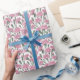 Discover this wrapping paper that celebrates the timeless beauty of the carnation! It features a charming design of vibrant pink carnations, illustrated in a detailed style, with blooming bouquets standing on elegant green stems against a white background.