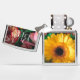 Botanical themed Zippo Lighter featuring a photo of colorful bunch of flowers: yellow gerbera and striped white red carnations symbolizing devotion, love and fascination. Glamorous optimistic design. Unusual gift for any special occasion. Please personalize the monogram!