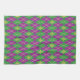 A harlequin pattern of green and purple is transformed into a playful argyle with an overlay of gold diamond outlines and fleur de lis, creating a fun and colorful pattern perfect for any New Orleans influenced Mardi Gras celebration.