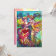 Colorful ,elegant and vibrant fine art invitation.Romantic carnival dancers : Artistic ,whimsical,expressive dance figures, beautiful blonde woman in feathered sparkling costumes is dancing with a young Harlequin with a golden red rose on the backside of the card.Watercolor painting in bright pink,fuchsia,green,red,blue,yellow colors , gold sparkles inspired from Comedy of Art (Commedia dell'arte ) and Carnival of Venice . It is also a beautiful design for wedding announcements,programs,save the date,anniversary,gatherings, romantic engagements,bridal shower,special occasions,Holiday party,Mardi Gras masquerade ball,birthday parties.Sweet 16,Quinceanera costume balls, New year's eve celebrations ,Valentine's day dinner just about any event you wish !