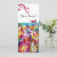 Colorful ,elegant and vibrant fine art invitation.Romantic carnival dancers : Artistic ,whimsical,expressive dance figures, beautiful blonde woman in feathered sparkling costumes is dancing with a young Harlequin with red burgundy florishes on the backside of the card.Watercolor painting in bright pink,fuchsia,green,red,blue,yellow colors , gold sparkles inspired from Comedy of Art (Commedia dell'arte ) and Carnival of Venice . It is also a beautiful design for wedding announcements,programs,save the date,anniversary,gatherings, romantic engagements,bridal shower,special occasions,Holiday party,Mardi Gras masquerade ball,birthday parties.Sweet 16,Quinceanera costume balls, New year's eve celebrations ,Valentine's day dinner just about any event you wish !