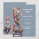 A tall, vivacious man dressed in drag is wearing a stunning pale dusky blue bustier and short skirt plus a matching hat. He is standing on a tall concrete pillar adorned with decorative pink and orange blossoms. Editable white text templates appear to his right and may be customized to suit your festive celebration. This luxurious, elegant and upmarket watercolor ai design is ideal for a festival, carnival, drag queen, lgbqt or circus celebration whether it be a retirement, birthday, halloween or a sit down dinner party. This is suited to both teens and adults
