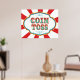 Carnival or Circus Coin Toss game sign with red and white stripe.