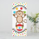 A carnival monkey juggling balls on a polka dot background and areas you can easily customize with your child's party information on carnival theme birthday invites he's sure to love!