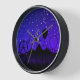 Features the silhouette of a carnival or the fairgrounds under an bright blue night sky full of stars. It brings back those childhood memories of an evening out at the fair eating corndogs and riding the roller coaster, ferris wheel and merry-go-round.