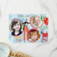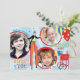 Sweet and fun carnival theme thank you card with 3 photo inserts. In aqua, blue , red, and yellow.
