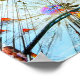 Relive the childhood memories of soft breezes, happy screams, and birds-eye views with this colorful photo poster of a red, yellow, turquoise, and green amusement park swing ride against a blue sky. Makes a great uplifting and inspirational gift!