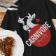 At the heart of this shirt lies a striking red circle, proudly bearing the proclamation "Carnivore Lover" in bold letters, instantly capturing attention and sparking conversation. But the centerpiece of this design is the white silhouette of a cow, with a crimson heart to the side. It's a visual celebration of the love for carnivorous delights, encapsulating the essence of meat-eating enthusiasts everywhere.