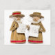 Two carol singers Christmas decorations made of straw. The singers are wearing straw hats and they are holding their music sheets in their hands. Photo: Karen Arnold