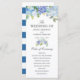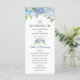 A unique soft blue floral themed wedding program card tailored specifically to your future wedding.