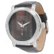 I had two concerns when ordering this watch - one that the watchband didn't look that glittery and two that the dial would be too large. Neither was a problem at all. The watch band is nice and glittery for a touch of bling. As to the size, I have small bones so I tend to like smaller looking accessories and I am quite comfortable with this. Neither too large or too small. The outside edge to edge on the dial is 1 1/4" the inside image is 1 inch.