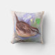 A Carolina wren perches on a branch with summer blooming morning glories in the background in the pastel artwork featured on this throw pillow. These sweet little birds are native to Eastern North America and are the state bird of South Carolina.