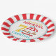 Come one, come all! Complete your decor at the greatest birthday party under the big top with our circus carnival party plates templates. This circus carnival ticket birthday party plates features red and teal carousel with a red big top tent background on a party plates design.