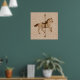 Mixed media digital graphic of a classic carousel horse, in mixed patterns, against an arabesque tiled background - Chocolate browns and tans accented with cream