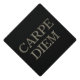 * graphic: captures the look of letters chiseled into stone. saying (ancient Roman/Latin) meaning: Seize the Day, enjoy the moment, don't waste time