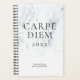 Keep on top of your appointments and schedule with this chic planner. This design features a subtle grey and white pattern background, overlaid with the inspirational quote "carpe diem" (seize the day) in black serif font, the year, and your name at the bottom.