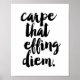 Go out there and get it! Seize the day with this quote art print featuring "Carpe That Effing Diem" in black brushstroke handwritten-style typography.