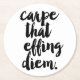 Get it! Seize the day with these coasters featuring a fun brushstroke font in crisp black. Coordinating items available in our shop!