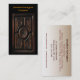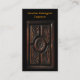 This business card is an advertisement for a carpenter. It is decorated with an image of a beautiful artistic wood carving in shades of brown, gold, mahogany and black. A central abstract circular flower image has petals radiating out to a carved circle which is surrounded by four sections. Each section has abstract leaf carvings. All text can be customized to suit your personal needs.