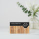 Carpenter business card design with simulated wood paneling background printed on the front and great text layout you can customize to suit your carpentry business. Designed for a cabinet maker, woodworker, or kitchen and bath remodeling.