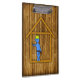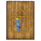For any handyman, construction worker, or carpenter. Illustrated cartoon construction worker with hard hat and tool belt inside the frame for a house.