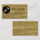 The perfect card for any contractor, carpentry, construction company and handyman. A background of wood, with an inset of black with a hammer.