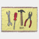 A quality printed throw has its advantages. This is a much finer weave throw than its loopier cousins, and though lighter, it is worth the investment for custom room accessorizing. The back is much prettier than the typical brown, and the fringe on the long sides very vivid, the selvage nicely done. Before photographing, I washed the throw in cold water, delicate, with a thicker woven throw the same size. On tumble dry low, this throw was dry in half the time as the other. This is a very practical quality if you use throws for furniture covers or to wrap up in frequently. The sleekness of the fabric makes it a great layer for accenting or protecting without the feeling of sitting on too much stuff. Perfect for napping or when you feel a light chill coming on. The color printing is beautiful and on this fabric, matched the design and color of my Photoshop image. This is an advantage for blending room fabrics and colors. The fringe on the short sides prints the colors from the design image and therefore varies from the side fringe. I streaked a white fractal line through the plaid pattern to give the illusion of weaving. This printed as crisp as an illusory thread, and put some white in the short side fringe, showing another advantage of print vs loomed- for artistic purposes, line lines, detail, and color integrity can be planned and preserved. My loomed throws have color limitations and more of a needlepoint texture. Print throws reproduce an exact image. The throw felt a little stiff straight out of the package, but this went away in the first delicate wash. Of course I searched the wash water for ink or bleeding and there was none.