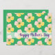Delicate yellow flowers on a green background with a banner that reads, "Happy Mother's Day". This flat card design is greenon the back, with an area for you to add your message.