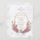 A beautiful floral, in shades of pink, with a golden arch frame against a "carrara marble" background. The cross can be dragged to any location, made larger or smaller ( + - ), or eliminated. (<a href='http://www.freepik.com/free-vector/wedding-invitation-with-floral-circle_1343276.htm'>Designed by Freepik</a>. <a href="https://www.freepik.com/free-photos-vectors/background">Background photo created by freepic.diller - www.freepik.com</a>). <br/><br/>The card is easy to customize with your wording, font andfont color.<br/><br/>Not exactly what you're looking for? All our products can be custom designed to meet your needs at no extra charge.<br/><br/>Simply contact us at askcottonlamb@gmail.com.<br/><br/>Coordinating products available: Pink Rose Frame Thank You Cards<br/>Want something more? Just ask us!