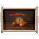 Beautiful one of a kind serving tray with carrots, onions and vintage scale. All images are my own original photographs.