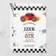 Cute race car theme kid's birthday party invitation card featuring illustration of a red car with flames. The text says "join the race" designed by totkorner.
