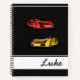 Notebook is shown with a black background and with a fancy fast sports car print.