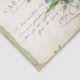 This vintage collage is great for decoupage and other paper crafts! French postcard ("carte postale") with postmark and French script handwriting on a piece of old parchment with a European Sparrow bird and Forget Me Not flower illustration. Green page underneath comes from an old French magazine.