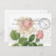 This design features a beautiful pink tea rose cultivar called "La France" set against a "carte postale" background, the French word for postcard. Gold vintage script and a 1909 postmark from the ground floor of the Eiffel Tower in Paris.