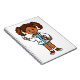 The doctor is in. Here's a very cute little girl who dreams of becoming a doctor. This design shows a girl dressed in a white lab coat, blue dress and red sneakers. She is holding a large needle and a clipboard with a bright red heart on it. Makes an ideal gift or inspiration for the little doctor in your family.