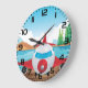 Cartoon Airplane on Lake Dock Fun Travel Adventure Large Clock
