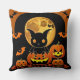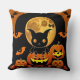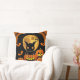 Cartoon Bat and Pumpkins Under Full Moon Throw Pillow