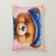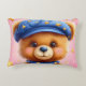 Adorable teddy bear astronaut printed on a blue pillow with yellow stars, perfect for nursery decor, kids bedroom, baby shower gifts, and cozy bedtime or playroom accents that inspire imagination.