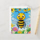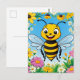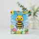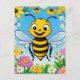 Happy Smiling Cartoon Bee flying in the meadow with colorful flowers