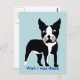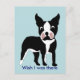 This cartoon style Boston Terrier postcard turns the common phrase "Wish you were here" around and says "Wish I was there" Change the text to something else if you like