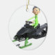 Cartoon Boy on a Snowmobile Ceramic Ornament