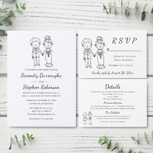 Cartoon Bride & Groom Black White Wedding Designed by Jasmine Ashlee