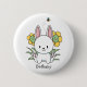 Cartoon Bunny Rabbit With Funny Flowers Button