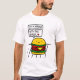 Background: The t-shirt itself is white, with the burger and text printed on it.