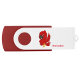 A USB drive with a red and white color scheme, featuring a cartoon illustration of a red cardinal bird. The cardinal is depicted with a cute, animated style, with bright red feathers and small yellow feet. The words "Red Cardinal" are printed in red text below the bird. The USB drive has a red casing with a circular cutout and a white section where the illustration is placed.