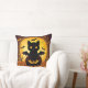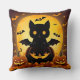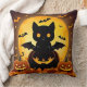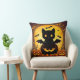 Cartoon Cat Bat and Pumpkins Under Full Moon Throw Pillow