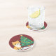 Cartoon Cat by Christmas Tree Snowy Sticker Coaster