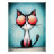 A playful cat illustration with strikingly large, glowing red eyes. The reduced background emphasizes the humorous expression and modern comic style.