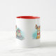 It's not a reindeer, it's a kitty! This brave cat has put on a scarf and santa hat and is bringing around presents with a sled through the snow. Maybe he's even delivering this mug with his likeness to an happy animal-lover.