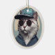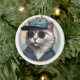 Cartoon Cat with Sunglasses Ceramic Ornament